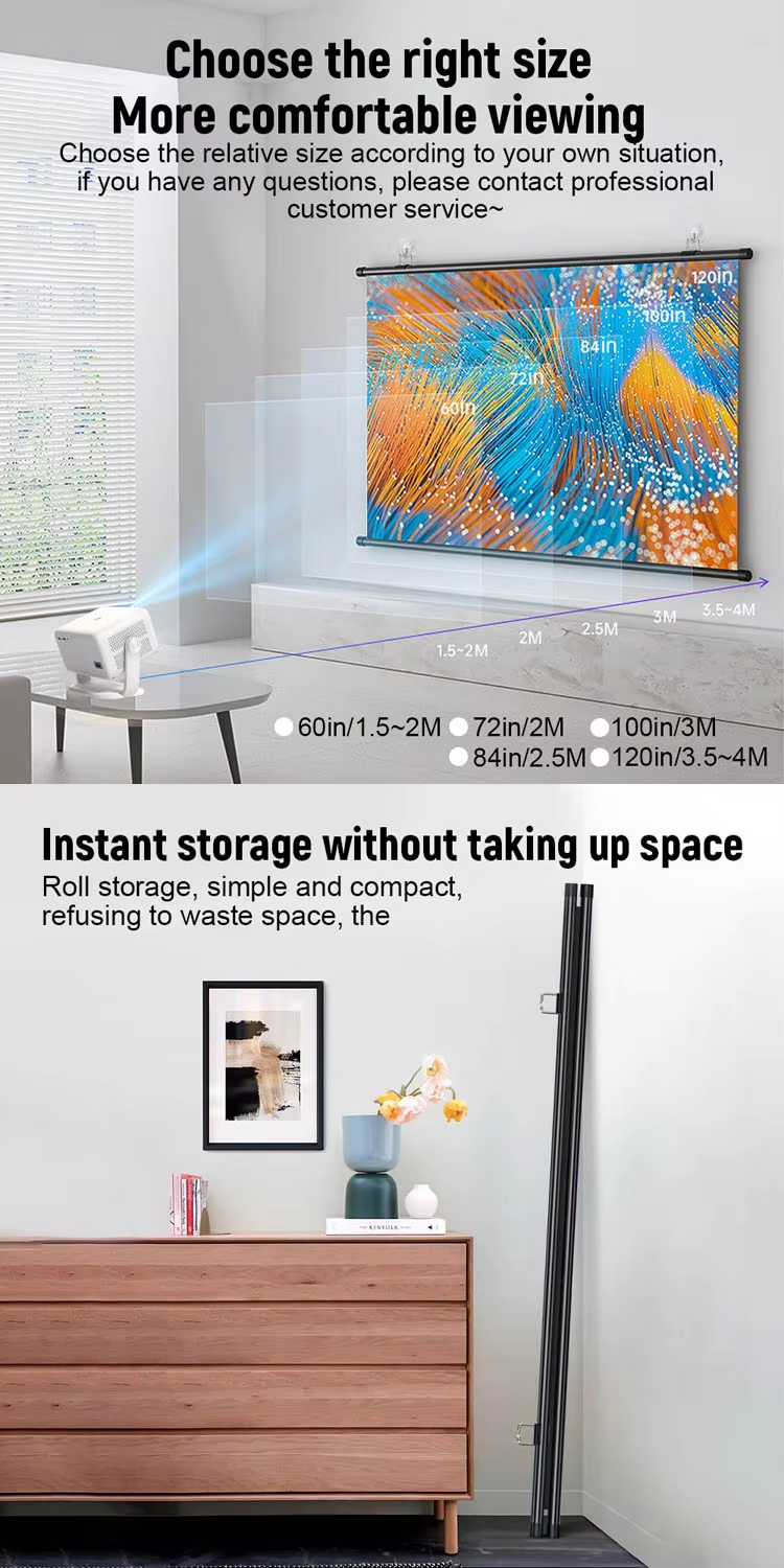 Anti-Light Curtain: Made of high-quality anti-light fabric, the projector screen resists ambient light, allowing you to watch movies without turning off the lights.